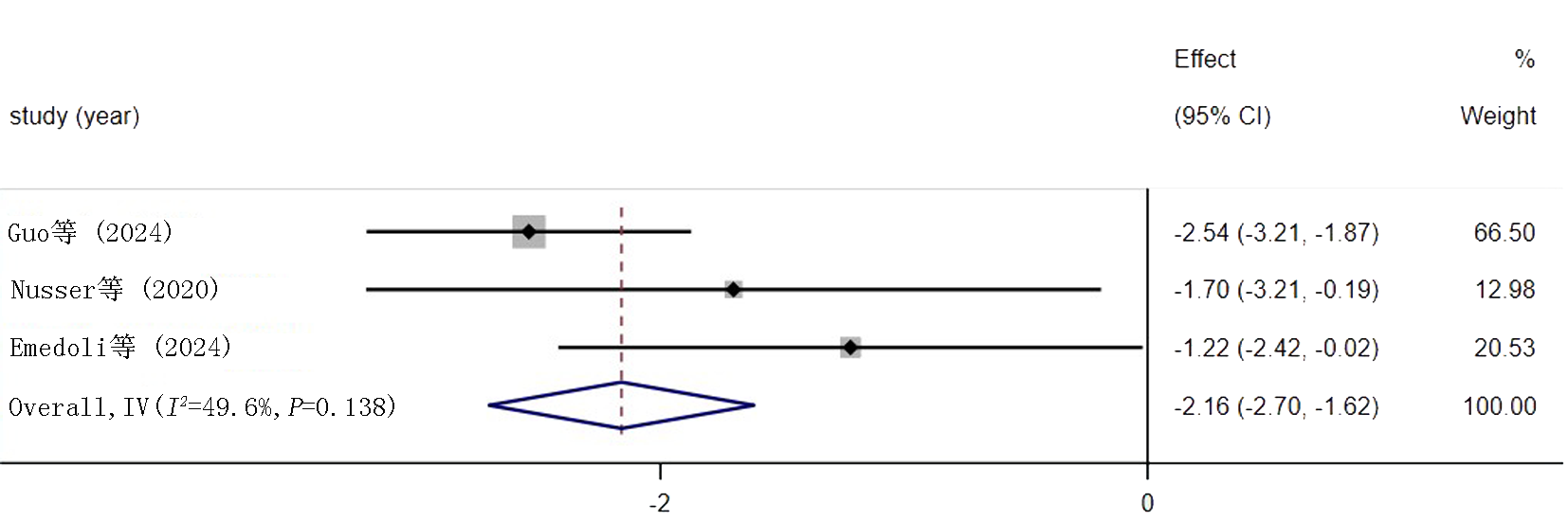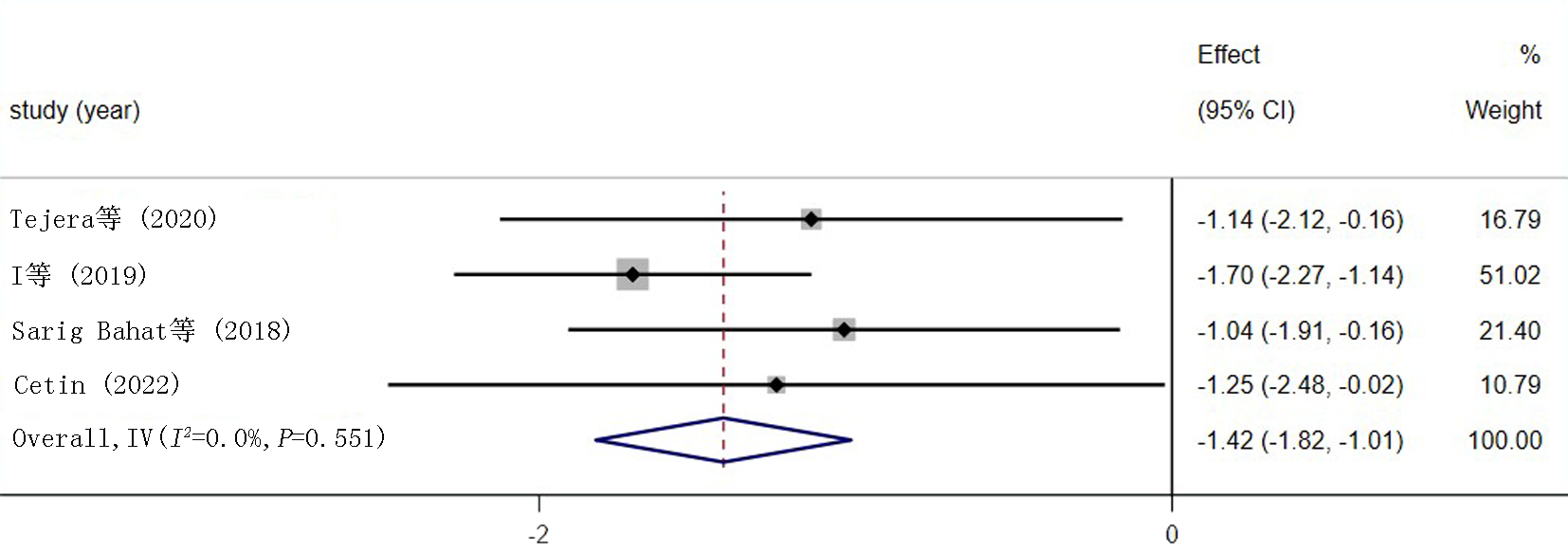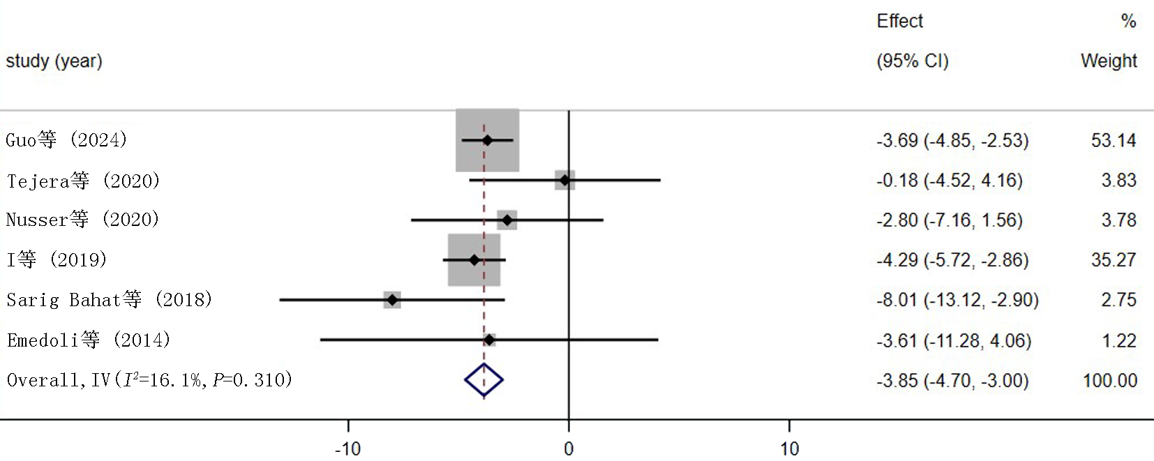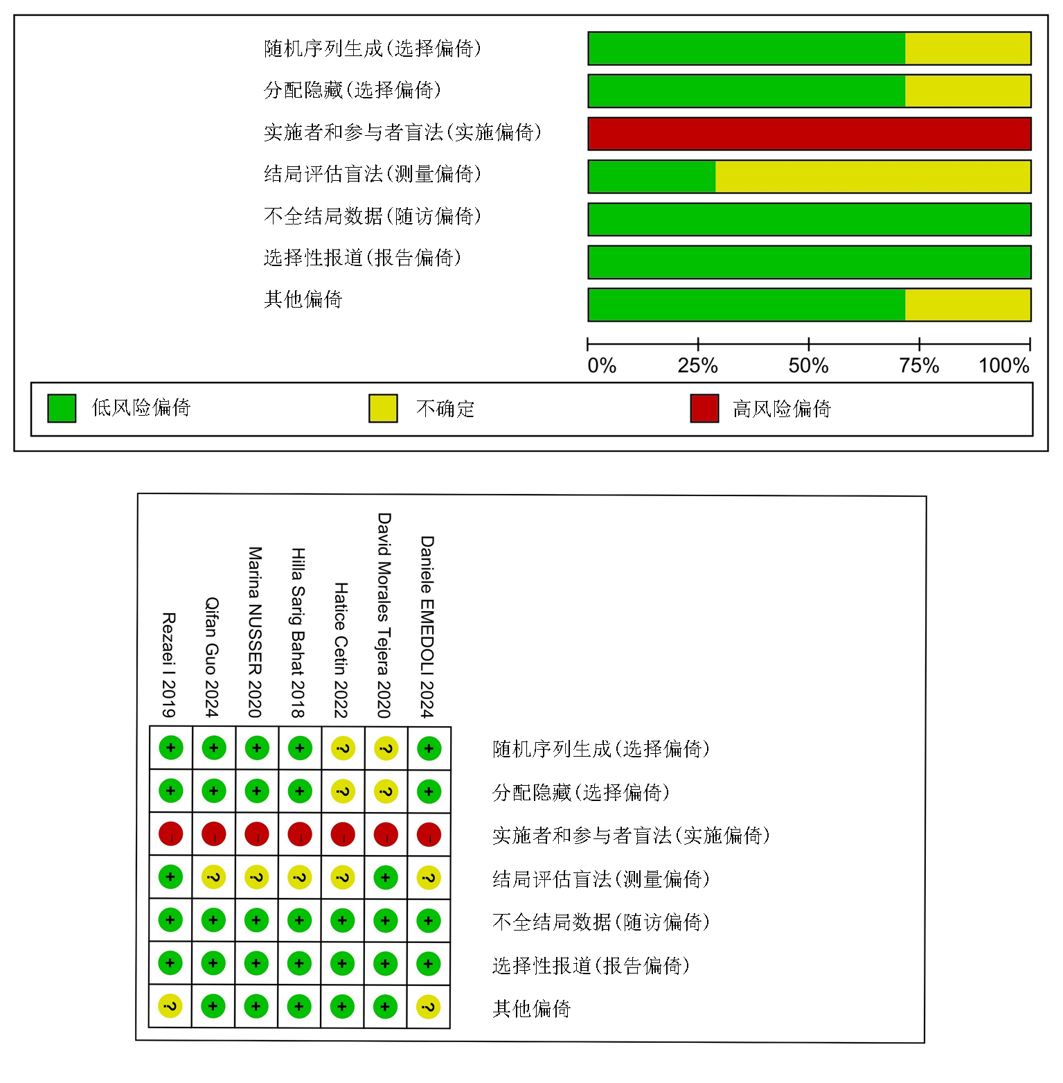 | Guo等[ | 低风险 | 低风险 | 高风险 | 不清楚 | 低风险 | 低风险 | 低风险 |