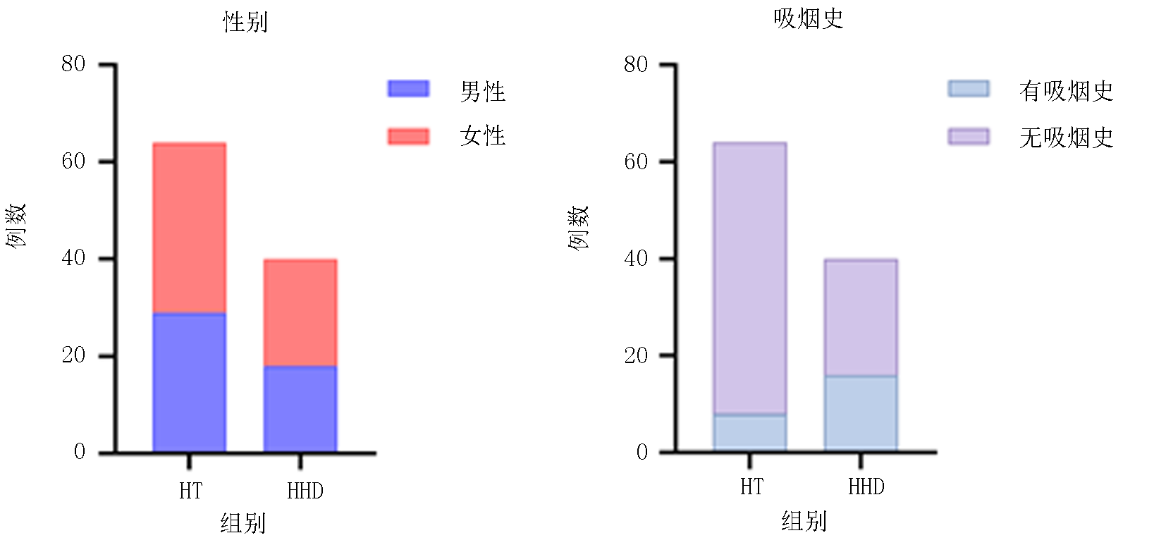 | 组别 | 例数 | 女性 [例(%)] | 年龄 (岁) | 吸烟史 [例(%)] |